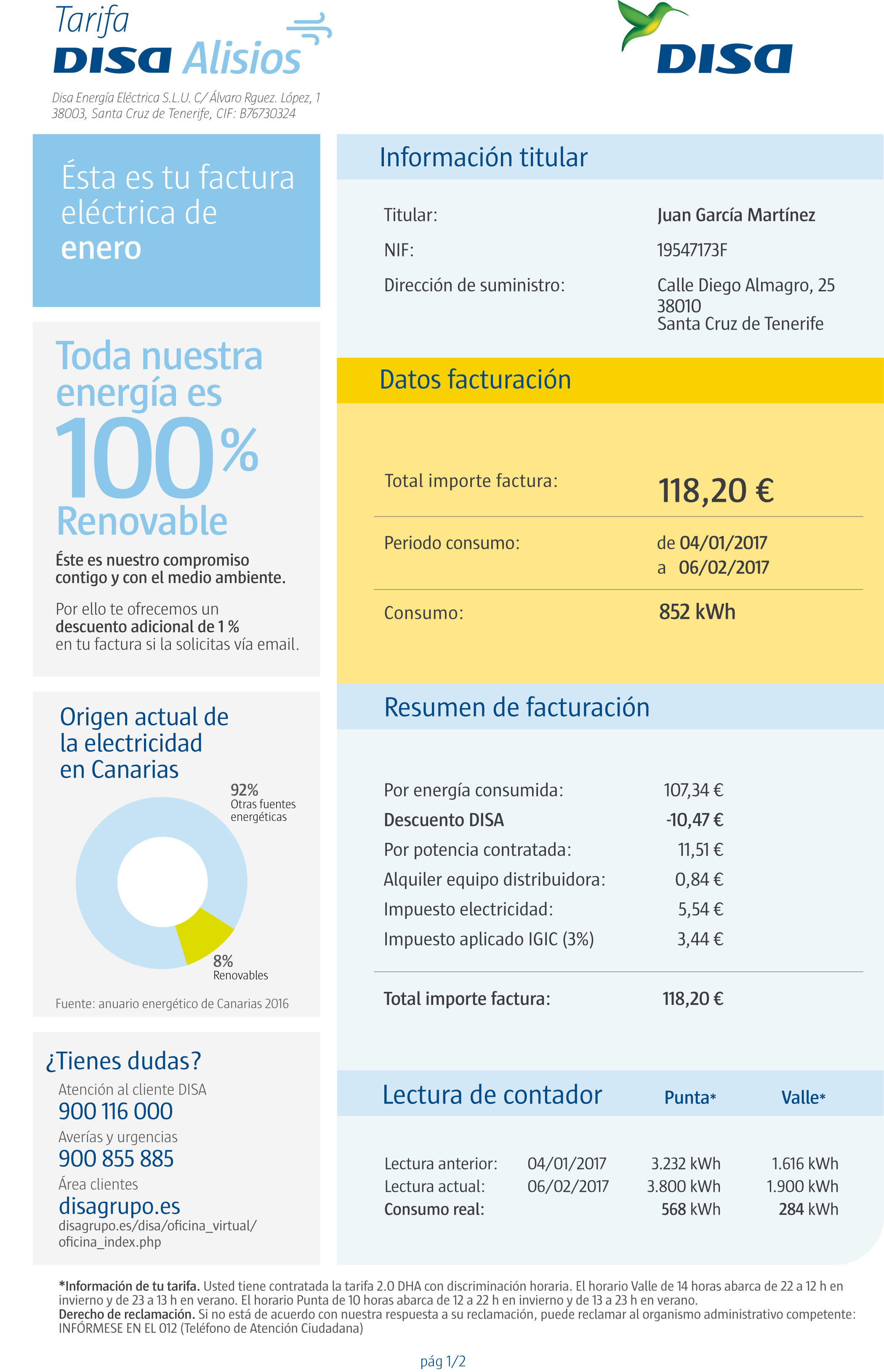 DISA Alisios es la tarifa para consumidores domésticos con menos de 15kW de potencia, con o sin discriminación horaria. Que sería equivalente a la tarifa de acceso 2.0TD.