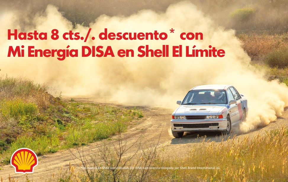 *Promoción válida del 9 al 31 de mayo 2025 en la estación de servicio Shell El Límite. El vale regalo de 1€ y los descuentos adicionales se enviarán a través de la app Mi Energía DISA para utilizar en próximos repostajes de 25 litros o más al día siguiente del repostaje inicial. Desglose de descuentos Shell: Por presentar o descargarte la App Mi Energía DISA y repostar Shell V-Power, descuento adicional de 5 cts. €/litro. Por presentar o descargarte la App Mi Energía DISA y repostar Shell FuelSave, descuento adicional de 3 cts. €/litro. Descuento adicional MPCLRP para Shell El Límite de 3 cts. €/litro para todos los productos.