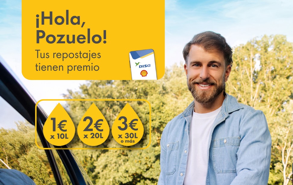 *Promoción válida en Shell Pozuelo del 2 de febrero al 30 de abril de 2026, ambos incluidos. El cheque que recibirá el cliente estará visible en un periodo máximo de 5 días desde el repostaje en la secc. ofertas de la app y podrá usarse en un repostaje mínimo de 10L para el vale de 1€, 20L para el de 2€ y 30L o más para el de 3€. Para que el repostaje sea válido, el cliente deberá identificarse en la estación de servicio con su tarjeta de fidelización de Shell ClubSmart, leyendo el expendedor dicho QR en el momento del pago. El cliente podrá acumular tantos vales como repostajes haya hecho en la estación de servicio. El cliente podrá obtener solo 1 vale por día y se asignará el valor del vale en base al primer repostaje válido efectuado en el día. El uso de estos vales con otros descuentos disponibles está sujeto a la compatibilidad de los mismos con la app Mi Energía DISA. Esta información se podrá consultar en el siguiente enlace: aquí.